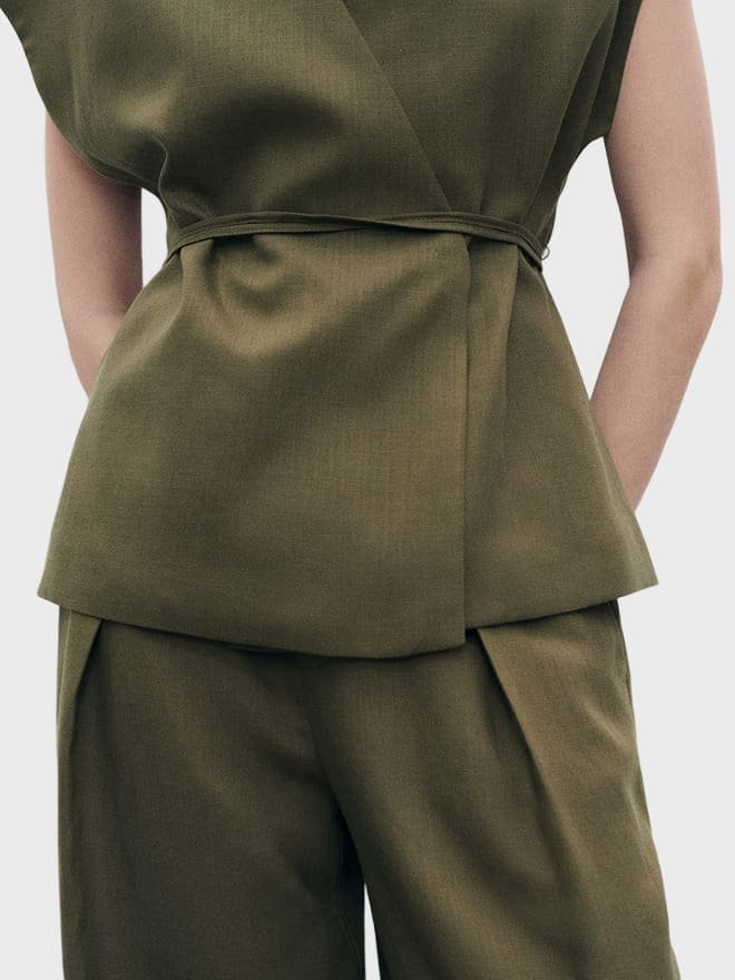 Thick knitted fabric. Short design. Straight design. Rounded neck. Sleeveless. Straps. Unclosed. Cable knit finish. Co-ord.
